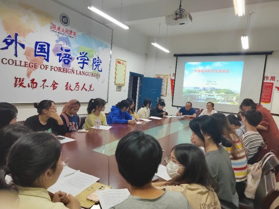 为了解教学动态,获取学生对教学的反馈意见,进一步提高学院的教学质量, 11月10日下午,388vip太阳集团官网在F119召开了学生座谈会。座谈会参会学生为2020级、2021级和2022级英语和商务英语两个专业的学生干部及学生代表。教学副院长彭禹、副书记罗望阳和学生辅导员参加了此次座谈会。