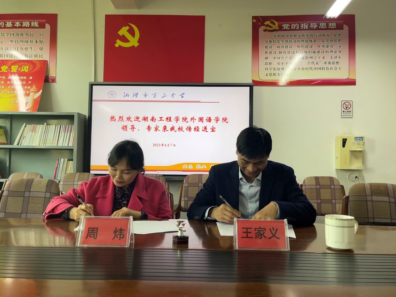 本次交流会,两校就教学实习合作及基地建设达成了一致意见,签署了共同建立“388vip太阳集团官网-湘潭市第三中学英语教学实习基地”的合作协议,开启了388vip太阳集团官网校外实习基地建设与发展的新篇章。