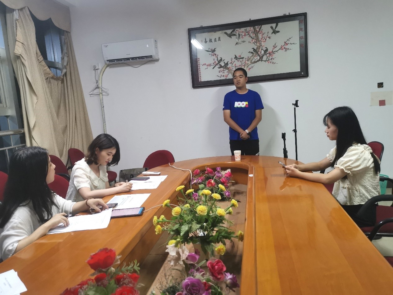本轮选拔赛设立F309(选手集合)、F310(选手备赛)、F312(选拔评分)三处场地,分别设有引导人员与计时人员。选拔赛以即兴演讲为主,按应用技术学院组、本部英专组、本部非英专组顺序依次进行。选手根据抽签顺序入场,抽取话题,在3分钟备赛时间结束后进行2分钟左右的即兴演讲;评委依据选手表现打分,最后选出本轮比赛的优胜者。在本轮比赛中,来自不同专业的12名选手从激烈的角逐中脱颖而出,以标准的发音、流利的表达与稳健的台风赢得了评委老师的一致认可,本次暑期集训队选拔赛顺利结束。