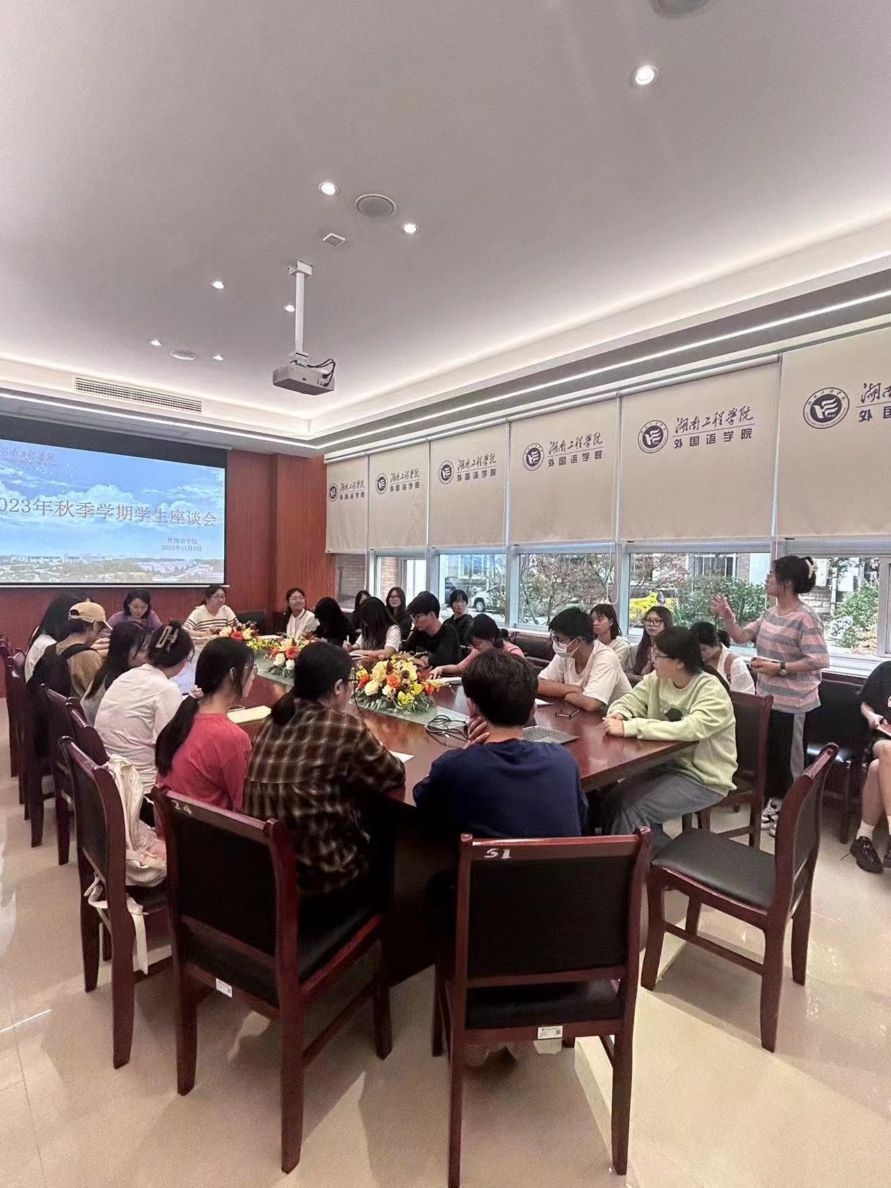 为了解教学动态,获取学生对教学的反馈意见,进一步提高学院的教学质量, 11月3日下午,388vip太阳集团官网在F119召开了学生座谈会。座谈会参会学生为2021级、2022级和2023级英语和商务英语两个专业的学生干部及学生代表。教学副院长彭禹和学办主任晏莉参加了此次座谈会。