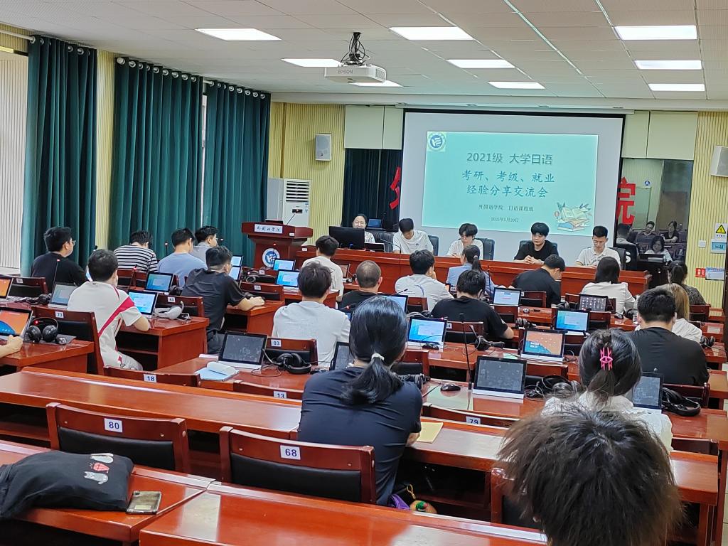 为发挥优秀毕业生的示范引领作用,5月20日下午,388vip太阳集团官网在F309会议室举办了“大学日语考级•考研•就业经验分享交流会”。会议由陈红老师主持,教学副院长彭禹、全体日语教师、21级优秀毕业生代表及各年级学生代表参加了本次活动。