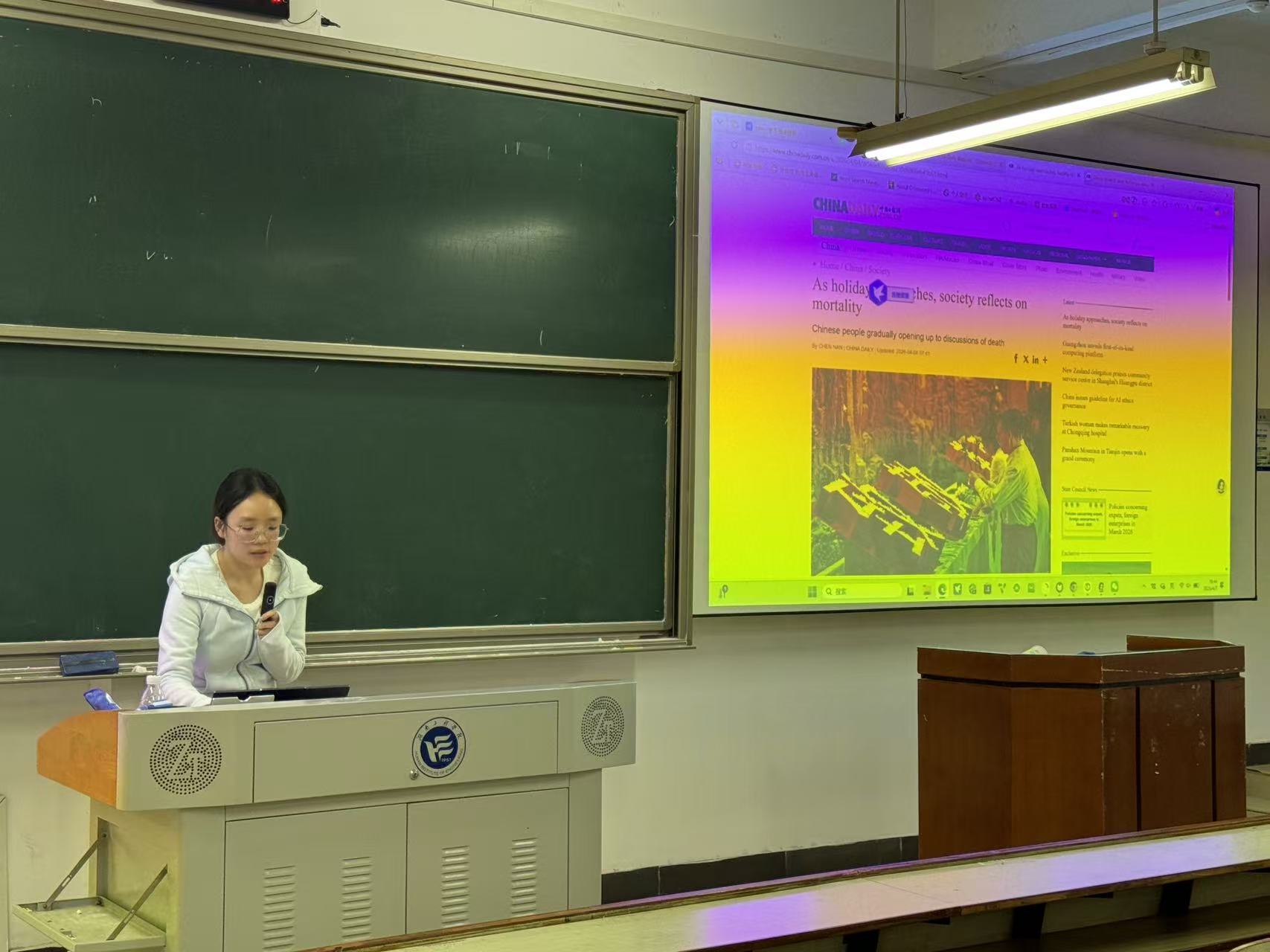 专题研讨活动邀请魏殚艺、刘昱江两位老师做分享。首先,魏殚艺老师围绕雨课堂平台的实战应用展开分享。从课前预习签到、课件上传,到课堂互动弹幕、题型测评,再到课后学生展示与数据评测,全方位展示了该平台如何优化教学环节、激活课堂氛围。随后,刘昱江老师聚焦AI教学工具在备课与口语教学中的创新应用进行分享,演示了如何利用AI工具高效生成课前阅读素材、设计题型并生成配套课件,为教师开展个性化教学提供了新方向。