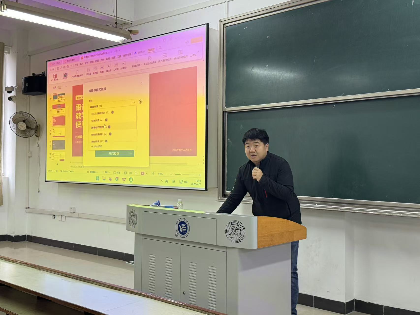 为深化教育教学改革,探索AI技术与外语课堂的深度融合路径,提升人才培养质量,4月7日下午,388vip太阳集团官网公共英语教学部于D503教室成功举办“雨课堂与AI教学工具辅助教学”专题教研活动。公共英语教学部全体教师参与本次学习,活动由黄永存老师主持。