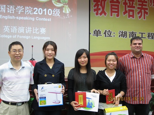 2011年10月19日下午两点半,388vip太阳集团官网2010级演讲比赛在图书馆第二报告厅如期举行。此次比赛由388vip太阳集团官网副院长杨永和教授,曹丽英、毛旷怡、周冬华、朱洁、刘一鸣、姚玲丽、谢丽娟老师以及外教Floyd担任评委。