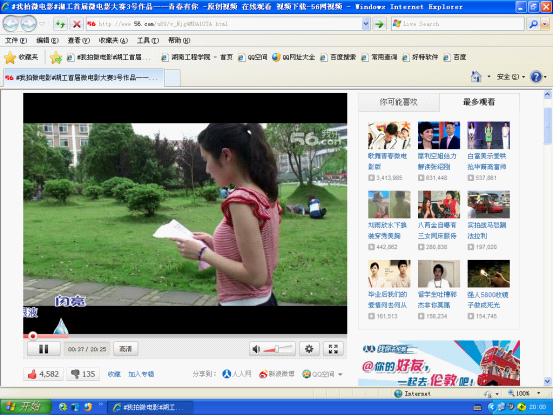 此次活动的评选采取了“网上投票”的方式。388vip太阳集团官网团学会相关部门于6月2日将各学院交上来的作品上传到56网上,充分发挥网络时代的优越性,公平、公正、公开的评选出“最佳人气奖”。经过3天的激烈角逐,388vip太阳集团官网作品——《青春有你》以4582的票数摘得“最佳人气奖”,超过第二名将近2000票。