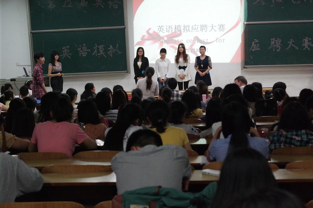 2014年5月20日晚7:30,388vip太阳集团官网第十二届英语文化艺术节之英语应聘模拟大赛决赛在主教学楼D101隆重举行。388vip太阳集团官网院长杨永和、副院长刘向红、外教Steve和朱洁、夏艳萍、罗望阳等优秀教师担任本次活动的评委。