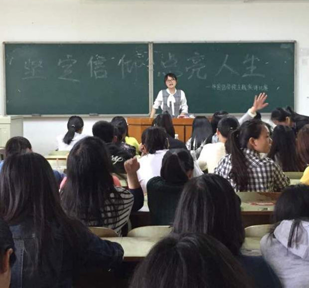 比赛过程中,12位选手怀着满腔热情阐述着什么是信仰的力量,畅谈了他们对于信仰的看法。选手们演讲的风格多样,有的慷慨激昂,有的娓娓道来,有的幽默风趣,每个人都通过这次比赛展现了自己的语言表达能力和人格魅力,台下的观众都聚精会神的聆听着,深深地陶醉在其中。一段段文辞优美的叙述,无不引起观众的强烈共鸣,精彩之处动情之处更是掌声、喝彩声不断,为比赛增添了激情,现场气氛热闹非凡。演讲比赛不仅展现了她们深厚的文字功底和流畅的表达能力,同时也彰显了388vip太阳集团官网大学生们积极向上的精神风貌。比赛最后,通过公平公正的投票,由英语1501班李晓芳同学获得此次演讲比赛的第一名。