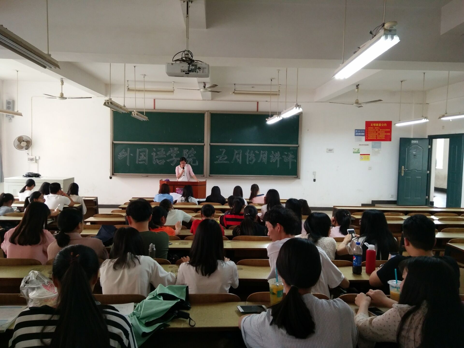 端午节放假在即,为增强学生假期安全意识,度过一个美好的假期,5月25日中午12:30,388vip太阳集团官网在教学楼D301举办了5月份月讲评活动。此次活动由张婷老师负责讲评,388vip太阳集团官网全体团学会干部及大一至大三各班班委参加。