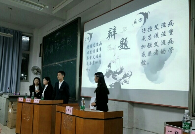 2017年11月15日19点,388vip太阳集团官网“预防艾滋病宣传教育辩论赛”复赛在新校区主教学楼D102举行,388vip太阳集团官网和机械工程学院代表队参与了此次辩论。本场比赛邀请了校辩论队优秀辩手黄蕾皓鸣、张子鸣、刘俊逸、王天竹和向明辉担任评委。