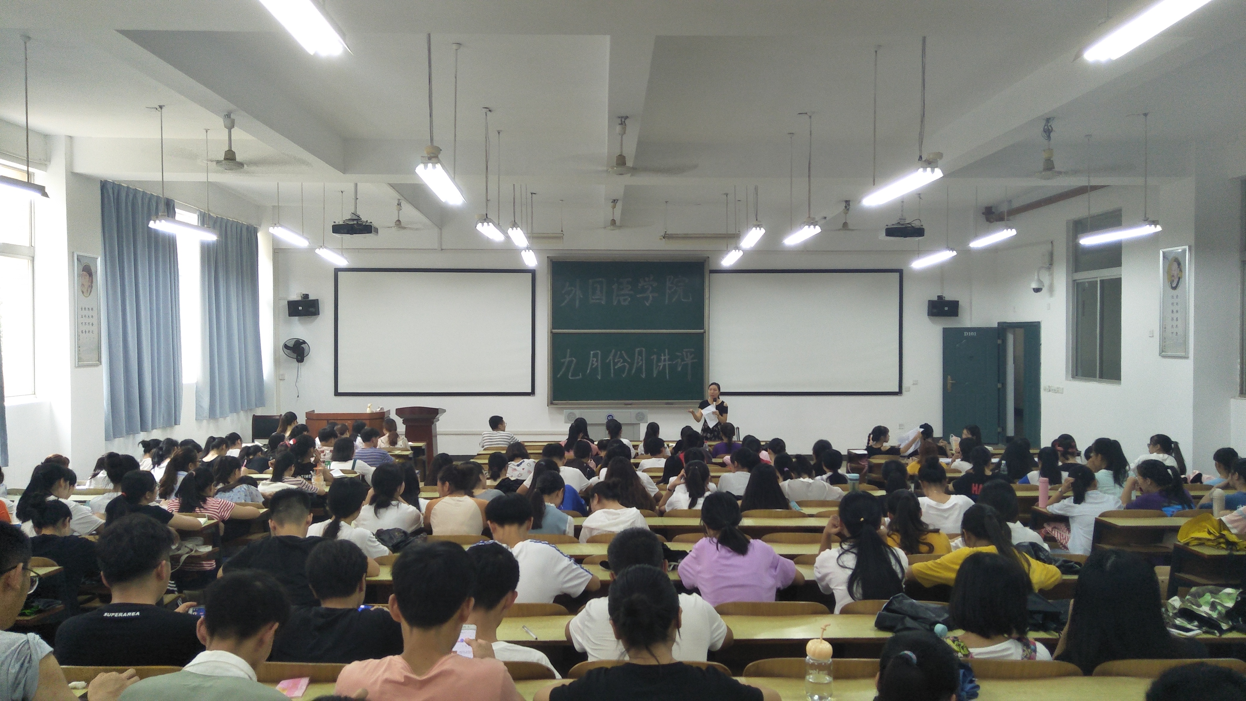 2018年9月4日中午12:30,388vip太阳集团官网在主教学楼D101召开新学期第一次月讲评。本次月讲评由张琼燕老师主持开展,388vip太阳集团官网团学会主席团、全体干部,大二至大四全体班委参加了此次月讲评。