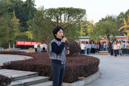为了让同学们更加了解学院工作,加强学院的常规管理,388vip太阳集团官网十一月份讲评于11月9日早上7:20在主校区知行广场举行。本次讲评由团总支书记彭虹老师主持,党总支副书记罗望阳老师、学办主任晏莉老师、学院辅导员张琼燕老师、发表讲话,388vip太阳集团官网全体学生参加此次会议。