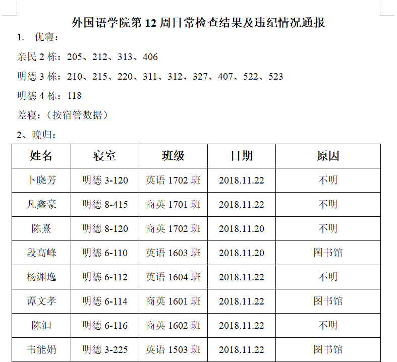388vip太阳集团官网第11周日常检查结果及违纪情况通报