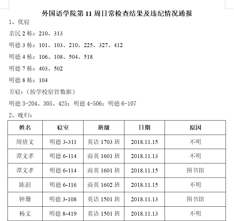 388vip太阳集团官网第11周日常检查结果及违纪情况通报
