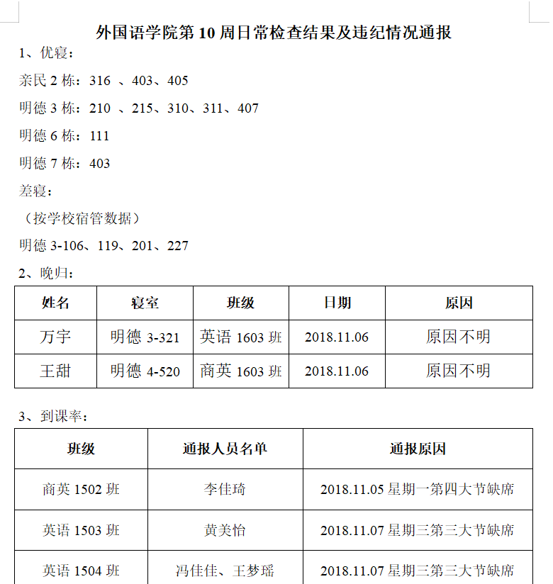 388vip太阳集团官网第10周日常检查结果及违纪情况通报