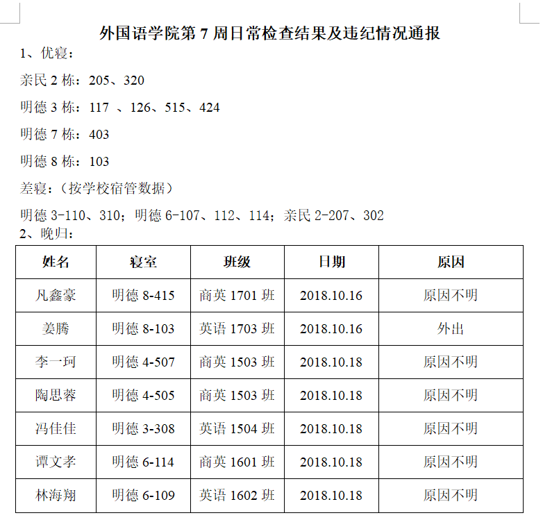 388vip太阳集团官网第7周日常检查结果及违纪情况通报