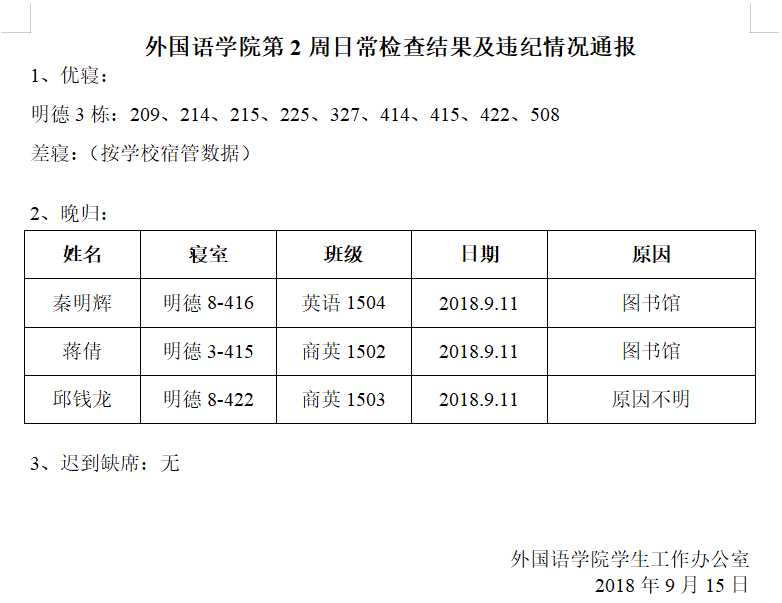 388vip太阳集团官网第2周日常检查结果及违纪情况通报