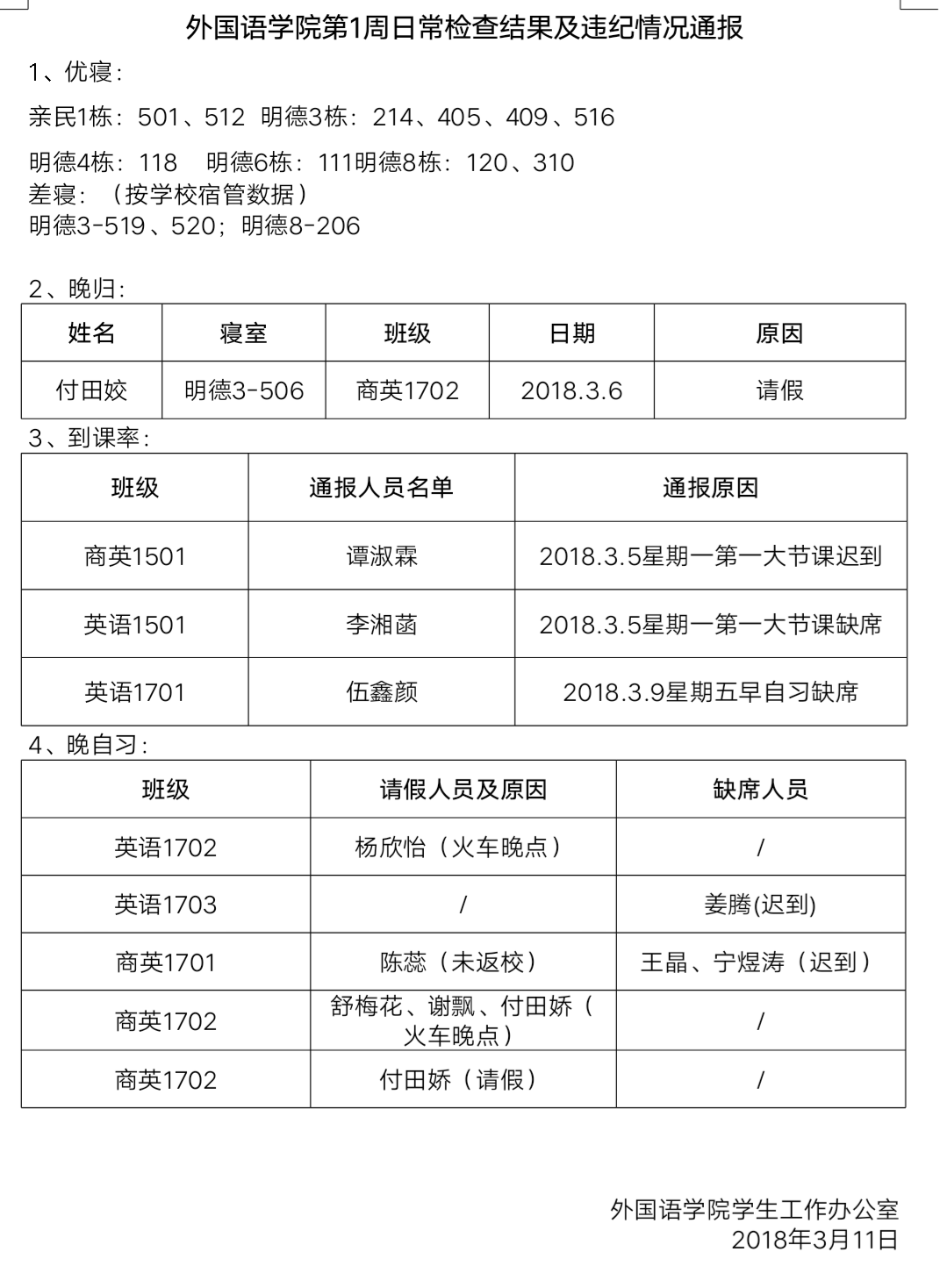 388vip太阳集团官网第1周日常检查结果及违纪情况通报
