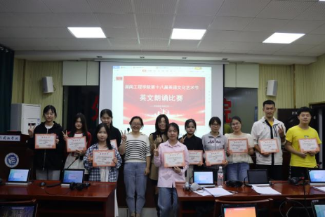 最后,评委老师与获奖学生共同合影留念,记录下了这一难忘的时刻。本次朗诵比赛在热烈的气氛中圆满落幕。它不仅展示了语言之美,更激发了学生们对中华传统文化的热爱和追求。此次活动不仅是对语言艺术的探索与传承,更是对青年学生全面能力的一次提升和锻炼。