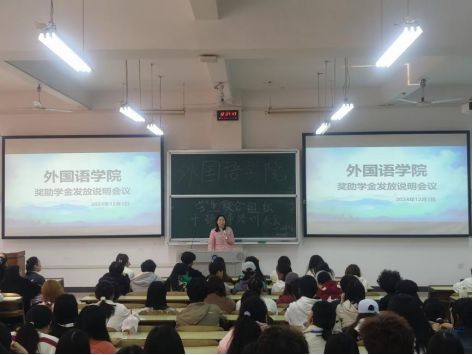 首先,张琼燕老师重点对奖助学金发放说明进行讲解,提醒各班级学生国家奖助学金不得以任何理由进行二次分配。期末考试和英语四、六级考试马上来临,她还要求全体学生树立诚信参考意识,呼吁全体同学认真备考、诚信应考。