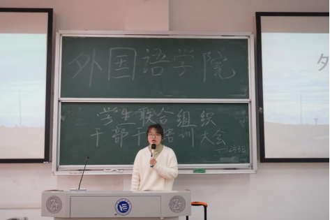 最后,为迎接本科教育教学审核评估,朱洁书记强调:全体学生要有主人翁意识,注意自己的言行举止,以饱满的精神状态迎接评估。随后,朱洁书记开展了以“加强人际交往,提高表达能力”为主题的讲座。她着重讲解了干部队伍需要具备的礼仪礼貌以及干部间加强团结协作的方式方法,从而更好地服务全院师生。