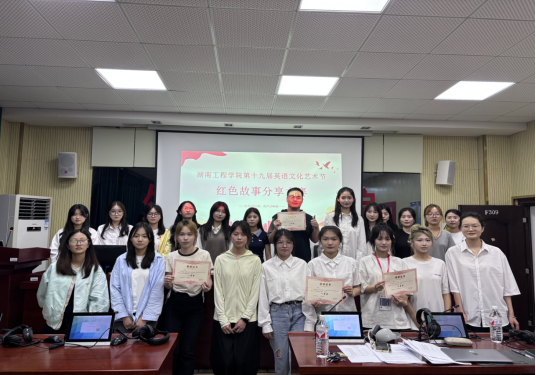 声动湖工,以英绎红展风华。决赛现场,选手们或慷慨激昂,或深情缱绻,将《红星照耀中国》《青春之歌》等经典篇章演绎得淋漓尽致。赵娜、蒋淑杰等同学以精准的语音、饱满的叙事斩获一等奖;向易伟、李佳娇等选手以流畅的表达、创新的编排摘得二等奖;陈诗雯、刘欣婷等同学则以真挚的情感打动评委,荣获三等奖。评委唐艺朗、杨爱妹、陈晓从内容深度、语言艺术、舞台表现等多维度进行专业评审,最终杨爱妹老师在点评中高度肯定赛事:“青年学子以英语重构红色记忆,既是对语言的锤炼,更是对信仰的叩问。”