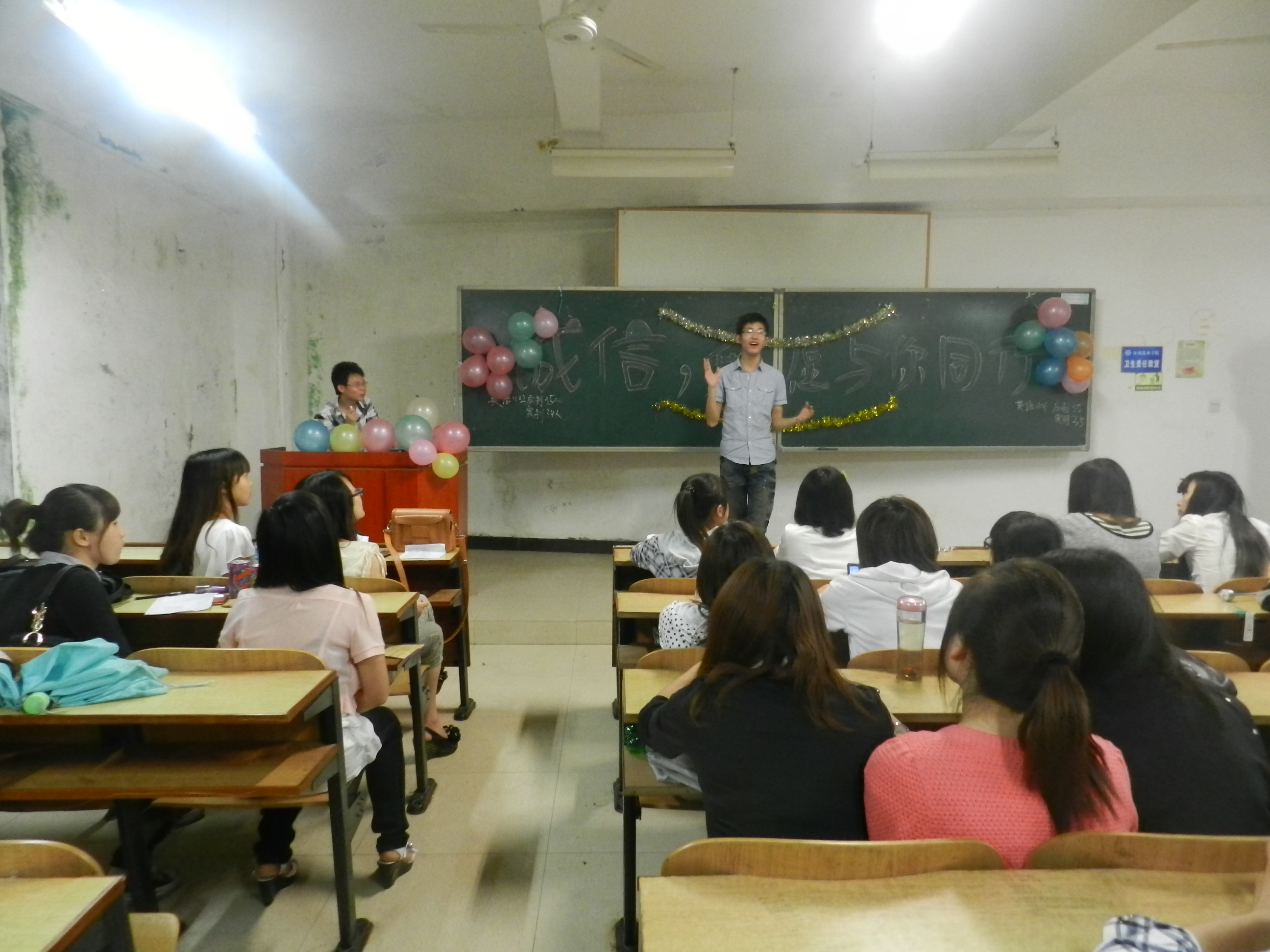 日晚上七点半,388vip太阳集团官网388vip太阳集团官网大一、大二各班在教学楼召开了以“诚信,我愿与你同行”为主题的主题班会。