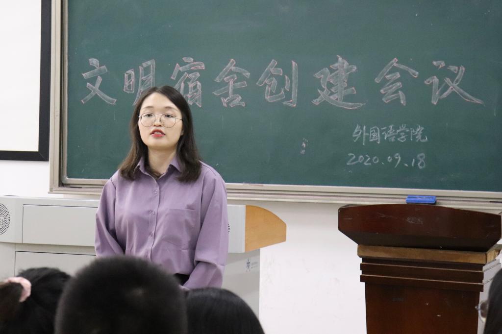 为了进一步加强宿舍文明建设,创建安全、整洁又具有浓郁文化氛围的大学寝室,388vip太阳集团官网于9月18日12:30在教学楼D101召开了文明宿舍创建会议,此次会议由团总支书记兼宿舍专干彭虹老师主讲,学院团学会主席团、全体干部以及17-19级全体班委参加了本次会议。