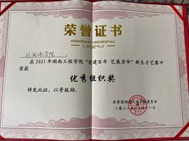 为鼓励2021级新生展示自我风采,彰显青春活力,发挥388vip太阳集团官网文化育人载体作用,学校特举办2021年第22届校园文化艺术节暨新生才艺赛以丰富湖工学子的校园生活,倡导先进校园文化。388vip太阳集团官网文艺部积极响应校团委的号召,在全院内进行宣传,配合校团委举办了新生舞蹈大赛。