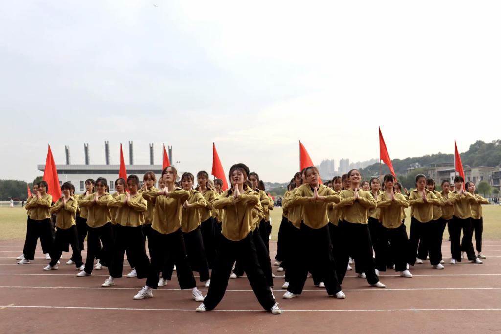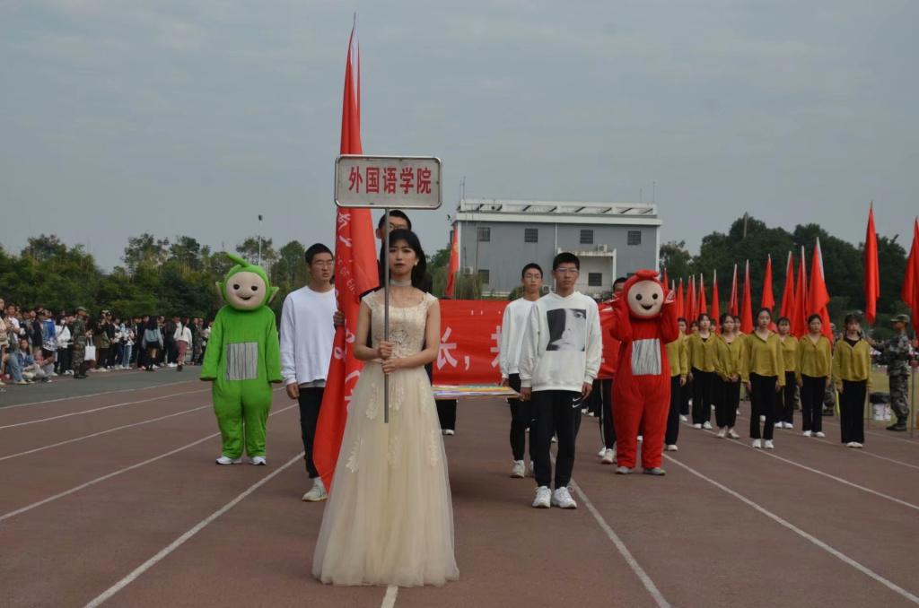在昂扬奋进的运动员进行曲中,388vip太阳集团官网方阵队首先出场。他们以自信阳光的精神面貌,充满活力的舞蹈动作,充分展示了外院学子的青春风采与魅力。他们高举院旗,呐喊着激昂奋进的口号,“博外之长,共语辉煌”更是响彻云霄。
