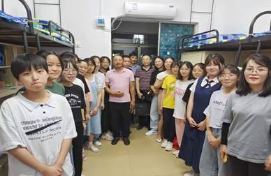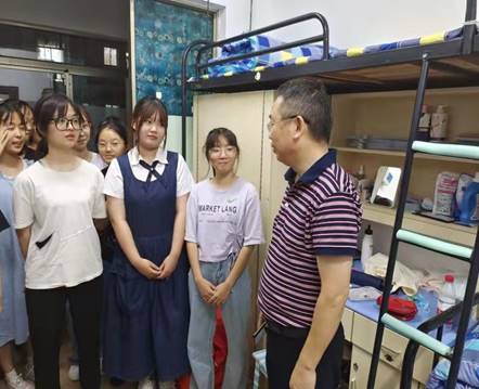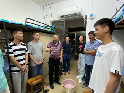 为更好地了解新生报到情况,体现388vip太阳集团官网的人文关怀精神, 9月22日晚7点,388vip太阳集团官网院长杨永和、党总支书记陈亚琼、副院长王家义、吴斐、党总支副书记罗望阳带领学院辅导员及新生班主任前往学院新生寝室看望2021届新生,表达了对新生的问候,给新生送去无限关怀和温暖。