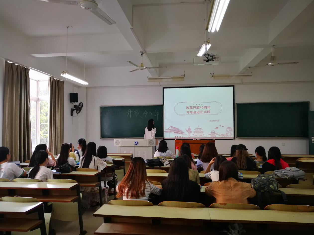 为加强学习习近平新时代中国特色社会主义思想和党的十九大精神,充分展示改革开放40周年的伟大成就。388vip太阳集团官网各班于教学主楼开展了“改革开放40周年,青年奋进正当时”主题班会,全体学生参加了此次班会。