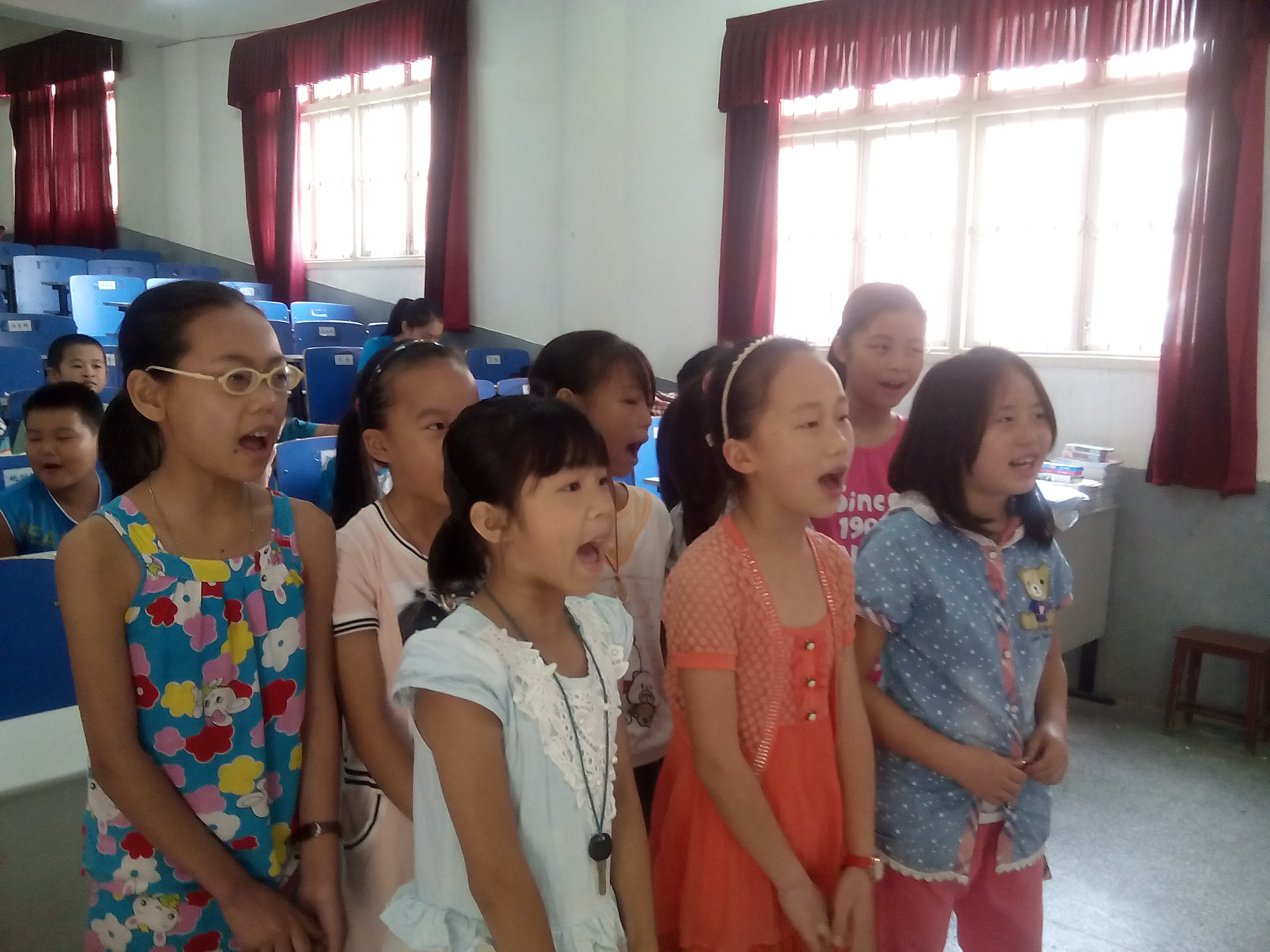 一方面,支教组在兴隆明德小学如火如荼地义务授课。今日由实践团志愿者赵兰、喻琼华主讲,赵兰以问题开场,询问孩子们的梦想,将梦想、未来职业与自我介绍相关联,激发孩子兴趣,引导孩子思考,围绕“introduce myself”将相关单词句式系统而有条理地教授给孩子们。喻琼华则将耳熟能详的英文儿歌《Little star》逐词教授,以发散性思维,举一反三,一词多记,待孩子们充分了解歌词含义后,学习歌曲,以此做结,孩子们欢乐稚嫩的歌声动人心弦,绕梁三日。师生欢聚一堂,依依不舍。