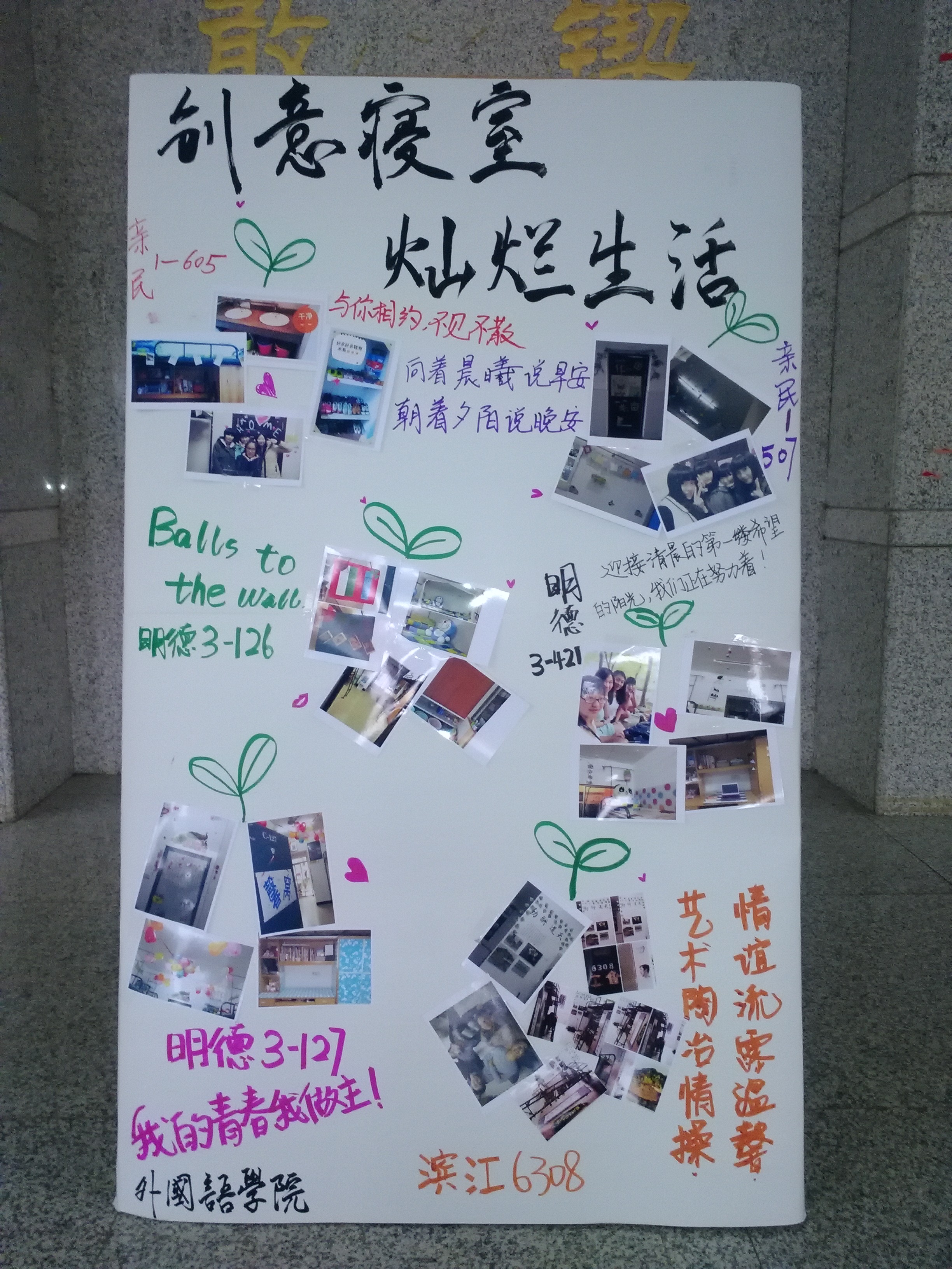 为美化寝室环境,营造良好的寝室文化氛围,增强寝室凝聚力,由388vip太阳集团官网生活部和心理部主办的寝室文化大赛于2014年11月11日正式拉开序幕。本次寝室文化大赛以“和、闲、雅”之“我寝,我爱”为主题。