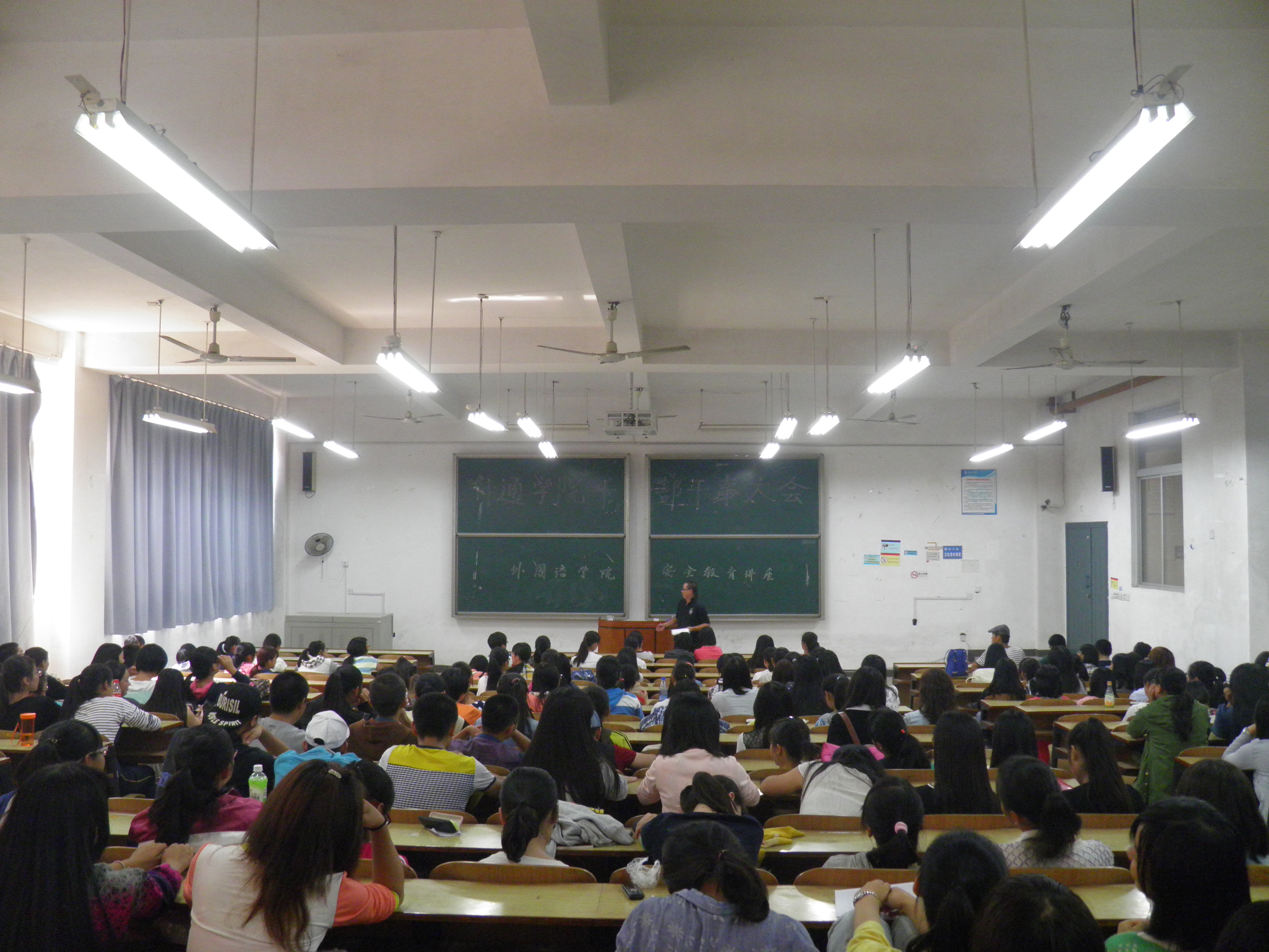 2014年10月15日中午12:30,由388vip太阳集团官网组织的安全教育讲座在D101进行。本次讲座由保卫处王骏老师和朱亮老师主讲,全体大一新生参加了此次讲座。