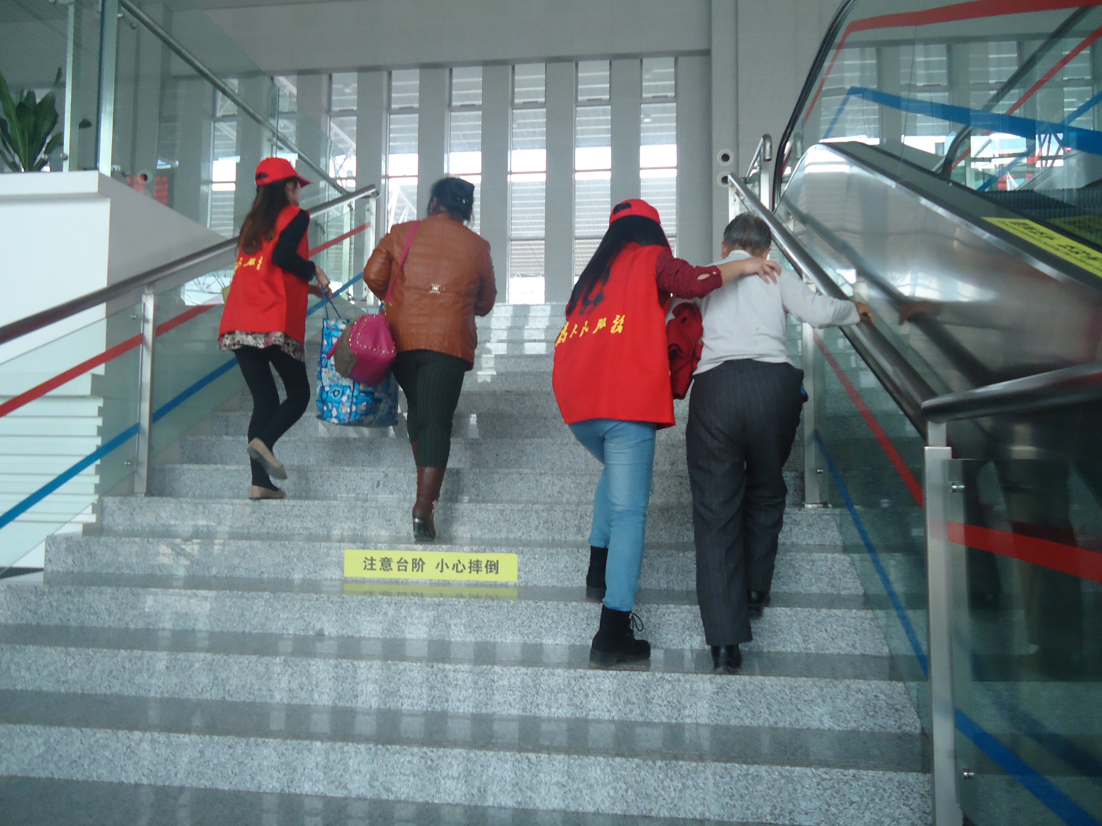 一到火车站,志愿者们就开始忙碌起来。他们有的帮乘客提行李,有的搀扶老人,有的帮忙维持排队买票的秩序,有的为乘客指引方向。虽然很累,但他们收到了很多祝福以及火车站工作人员的认可,更重要的是他们还感染了其他人一起来帮助那些需要帮助的人。