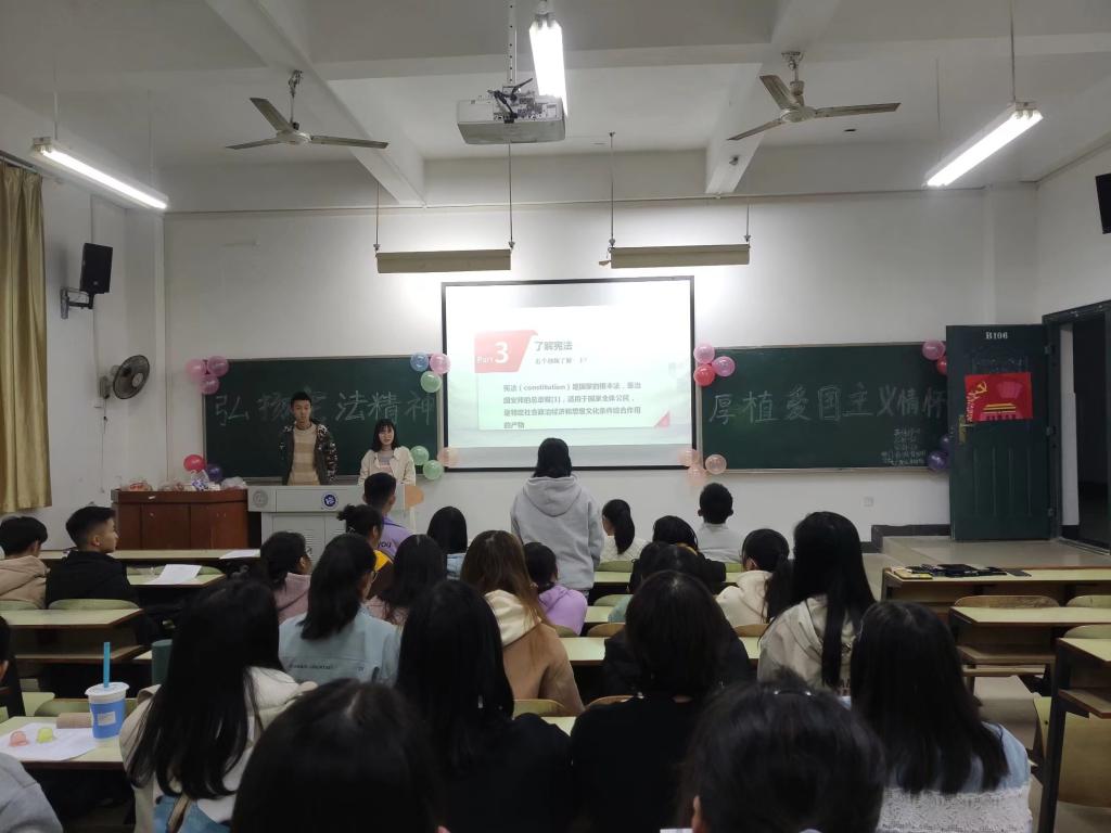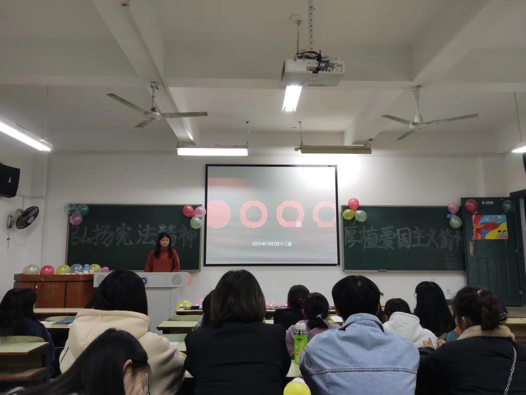 为弘扬宪法精神,加深青年团员对宪法的理解,加强爱国主义教育,12月11日晚7:00,388vip太阳集团官网大一至大二各班团支部在教学楼举行了以“弘扬宪法精神,厚植爱国主义情怀”为主题的团日活动,各班同学积极参与了本次团日活动。