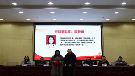 英语1901班邓云锜全国大学生英语写作大赛中获全国总决赛一等奖第一名