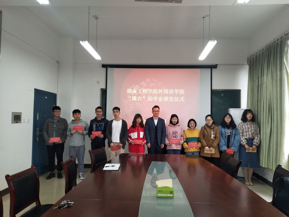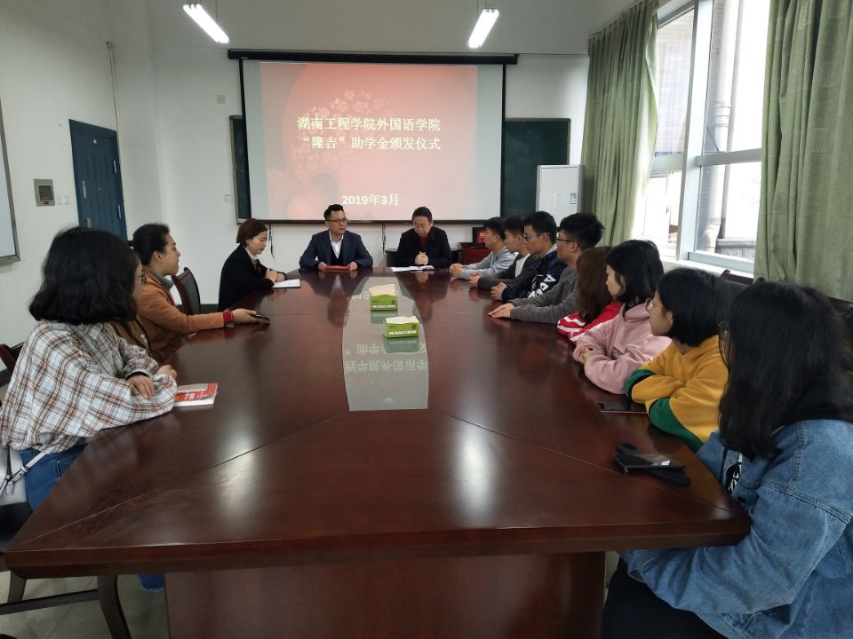 春回大地,爱满校园,3月19日上午10点,388vip太阳集团官网举行“隆吉助学金”颁发仪式在F119举行,388vip太阳集团官网院长杨永和、隆吉集团总经理冯维、388vip太阳集团官网学生工作办公室辅导员、受助学生参加了颁发仪式,仪式由党总支副书记黄琴主持。