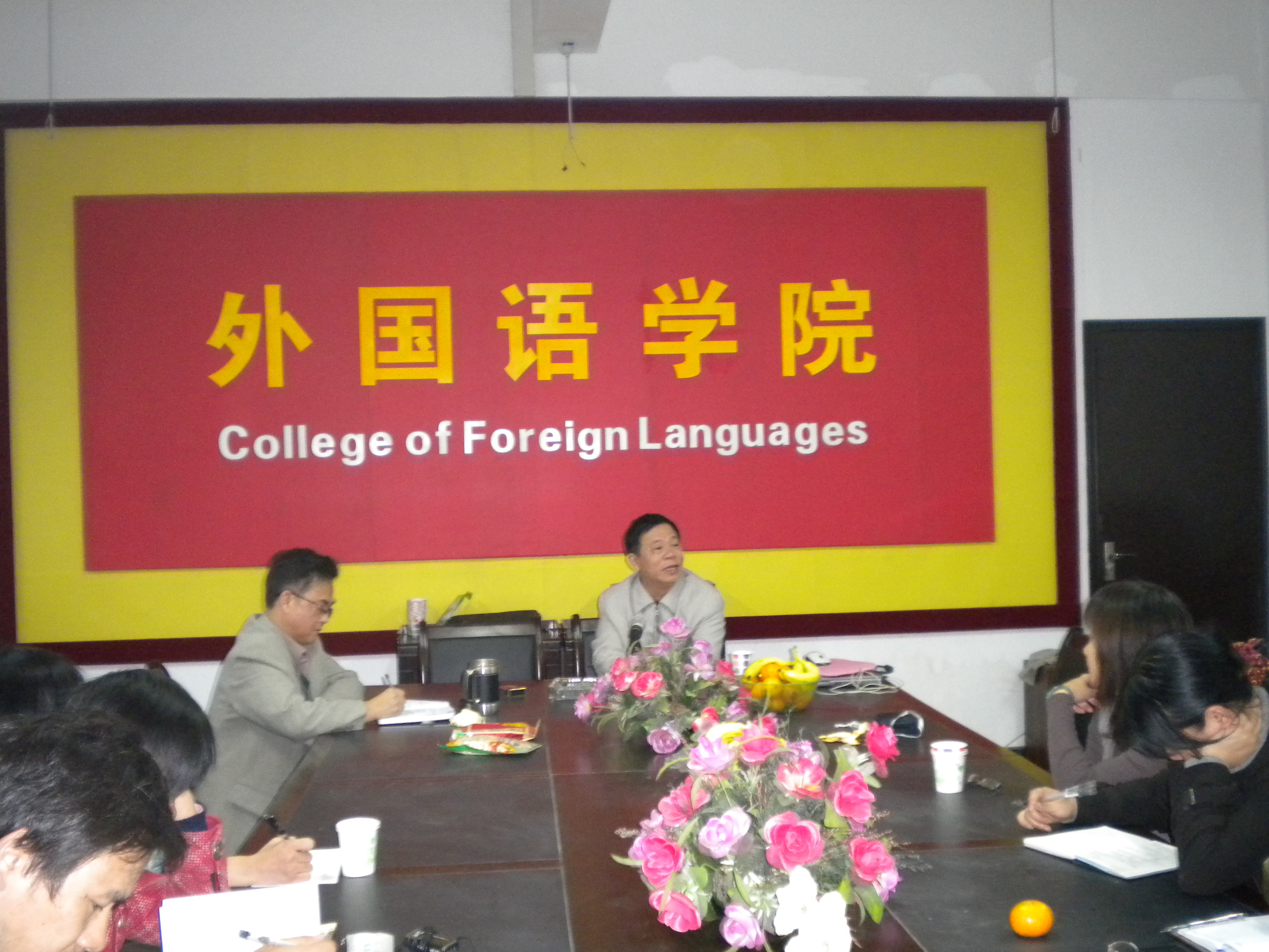 2009年11月10日下午,湖南师范大学388vip太阳集团官网院长、湖南省翻译协会会长、博士生导师黄振定教授应邀来我校讲学。我校388vip太阳集团官网院长张从益教授等领导热情接待了黄教授,并简要介绍了我校的基本情况。随后,黄振定教授在388vip太阳集团官网会议室为英语专业教师作了题为《科研方法要义》的讲座。该讲座历时2小时,主要谈论高校教师在科研领域如何通过细致观察和逆向反思来进行缜密的逻辑分析,从而活跃思维,做到科研创新。讲座内容广泛,涉及哲学、语言学、文学、翻译等研究视角。黄教授旁征博引,讲座精彩纷呈。