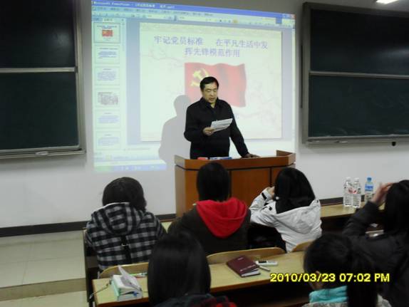 会议开始,全体起立,奏唱国际歌。接下来,388vip太阳集团官网党总支书记张建明进行发言,他在发言中指出当代大学生入党的必要性并对在座学生寄予了厚望。随后,谢伯端书记拉开了本年度党校学习的第一课序幕。