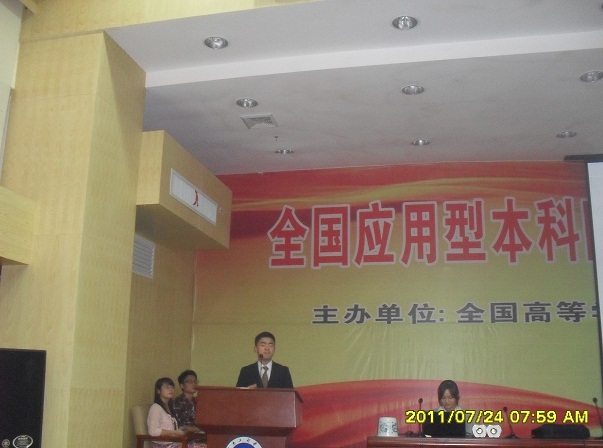 2011年10月11日晚七点半,即将代表我校参加湖南省普通高等学校第十七届大学生英语演讲比赛的六名参赛选手在图书馆二报告厅给老师和同学们带来了一场激情飞扬的汇报演出。388vip太阳集团官网党总支书记张建明,院长张从益教授,副院长杨永和、刘向红教授,英语专业教研室老师沈文辉博士,以及陈锋、毛旷怡、彭禹、王家义、周冬华老师到场观摩。