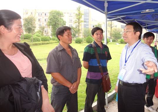 2012年9月14日上午,388vip太阳集团官网党总支书记肖江淑、院长杨永和、副书记黄琴以及副院长刘向红等亲临迎新现场进行查看、指导工作,并看望各位新生接待人员。