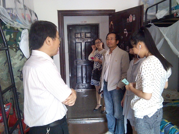 2012年9月16日上午9时许,388vip太阳集团官网党总支书记肖江淑、院长杨永和、副书记黄琴、副院长刘向红和王家义等领导一起到学院新生寝室看望新生,表达了对新生的问候,给新生送去无限关怀和温暖。
