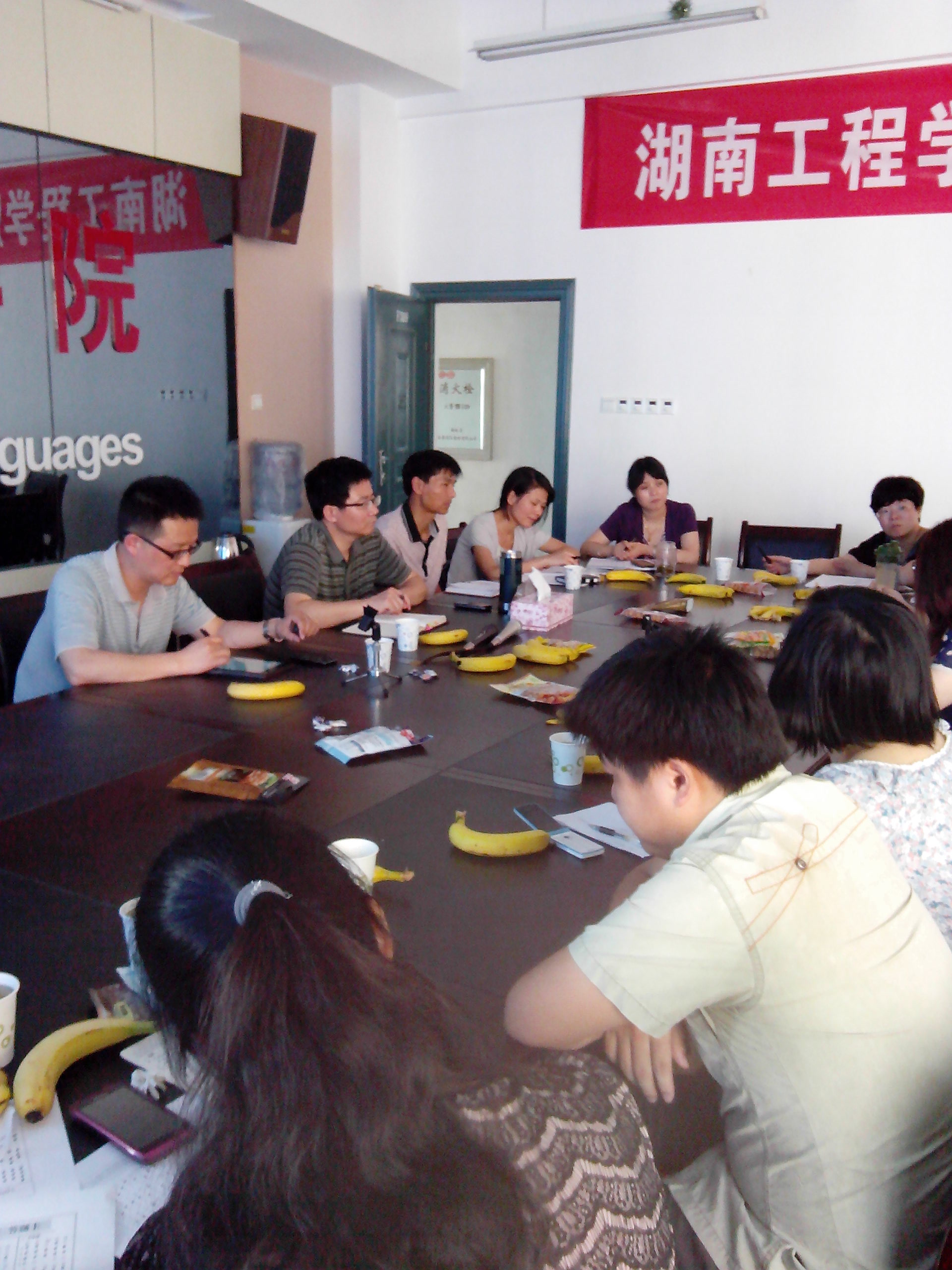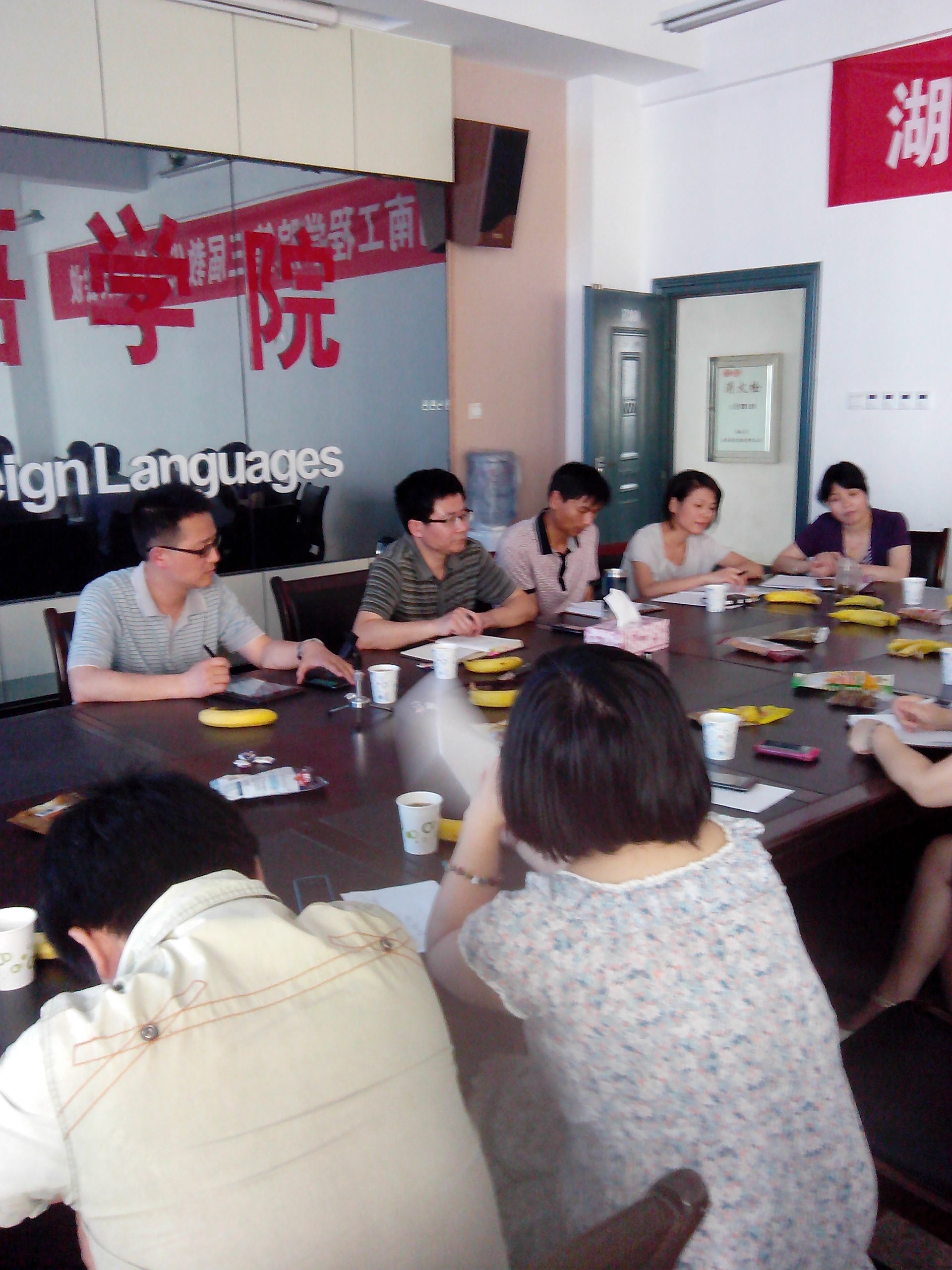5月27日下午,副校长易兵、教务处处长邓奕、教学质量运行科科长谢丽娟等一行3人到388vip太阳集团官网调研大学英语基础课教学工作。388vip太阳集团官网党总支书记肖江淑、副院长刘向红、王家义、党总支副书记黄琴、教研室主任及部分卓越班任课教师参加了调研座谈。