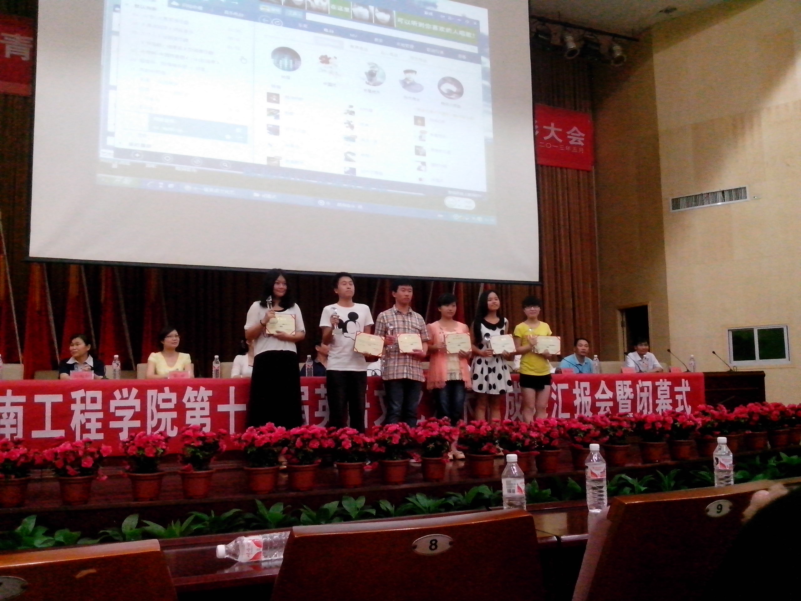 大会上,388vip太阳集团官网院长杨永和宣读了获奖的集体和个人名单。优秀组织院部为管理学院和电气信息学院。各项活动一等奖获得者6人,二等奖获得者12人,三等奖获得者17人。出席表彰大会的领导分别为获奖集体和个人颁发了荣誉证书及奖品。