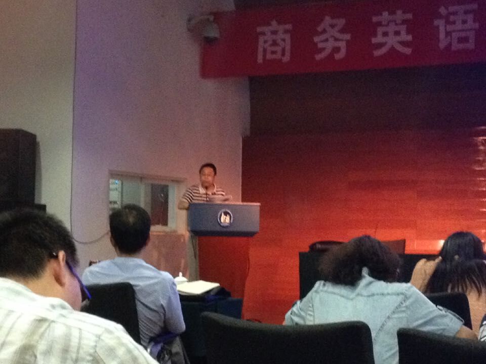 近几年,商务英语专业建设一直是388vip太阳集团官网各项工作的重中之重。在院长杨永和教授的带领下,商务英语教研室主任彭禹和副主任姚玲丽参加了外研社7月12-16日在北京举行的“商务英语课程设计与教学方法”研修班。商务英语学科的领军人物王立非、叶兴国和彭青龙等专家高屋建瓴、把握外语教育新常态,分别为全国23个省、市、自治区60余所高校的近200名教师作了题为“新常态下的商务英语教育”、“国家标准对商务英语人才培养和专业建设的要求”和“商务英语教师发展”的学术讲座。