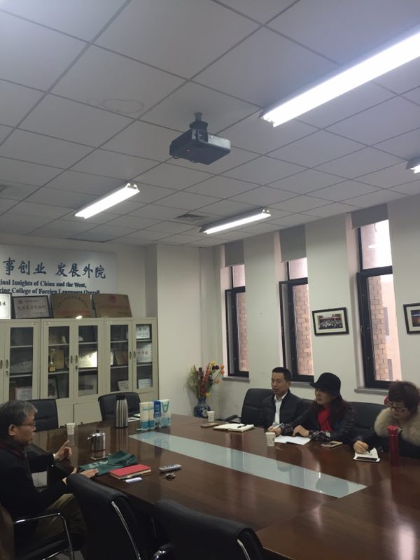该院肖立新副院长给予了热情接待并详细介绍了学院历史和办学规模、办学理念、办学模式和师资队伍等情况。该院设有英语系、日语系、大学外语教学部、高职部、外国语言文学研究所、语言实验中心及应用语言学硕士点和英语、日语两个本科专业及经贸英语、商务英语两个高职专业。教学方面有诸多值得我们学习和借鉴的地方。如在实践基地开发方面,与地方企业和部门如天津档案馆、天津市考试院等合作建立翻译实习基地;从本校的经济学院请专业教师进行《国际贸易实务》、《国际结算》等商务课程的“扫盲”;开设计算机服务课程,利用计算机辅助翻译教学,学生做语料库,提高学生的动手能力,培养“一专多能”的人才;鼓励和支持口语好的学生参加各类竞赛,为就业创造优势。该院在青年教师培养和帮助教师专业发展方面的举措尤其值得学习借鉴:学院筹资每年举行学术年会,出版论文集,在论文集上发表的论文可为校级课题提供结题支撑;帮助教师提高语言教学技能、转变教学理念、促进教师持续发展;学院组成教学方向团队、微课团队进行教研教改科研的分工合作,以提高教学科研工作效率等。双方还就教学、科研等方面进行了深入交流。之后,肖院长还提供了该院15级英语专业和日语专业的人才培养计划,并赠送了他题为《论交际能力与批判性思维能力的培养》学术专著。