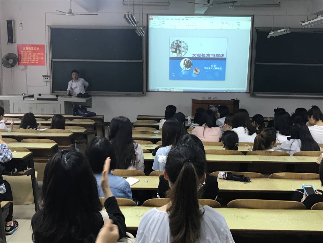 为了能够让同学们更好地完成学年论文,5月23日下午4:30,388vip太阳集团官网英语语言文学学术骨干、商务英语教研室吴斐博士在D201为15级商务英语专业学生举行了《文献综述写作入门方法与技巧》的专题讲座。