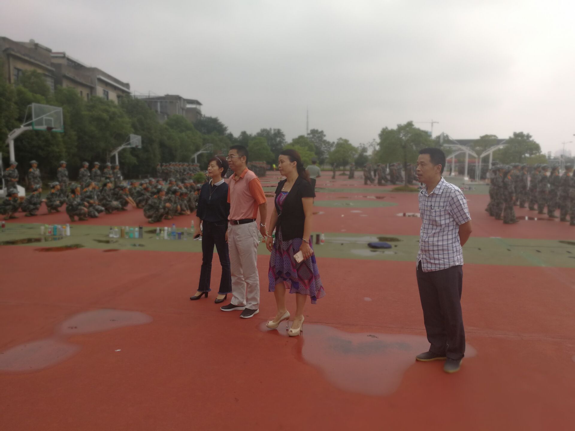 军姿、正步,新生们严格遵守教官的口令,重复着动作。绿茵场上,不仅有教官和队友、有骄阳与风雨,更有老师的陪伴,领导的关怀。20日下午4点,388vip太阳集团官网院长杨永和、党总支书记肖江淑、副院长罗胜杰、党总支副书记黄琴、学办主任连泰对正在训练中的2017级新生进行慰问。
