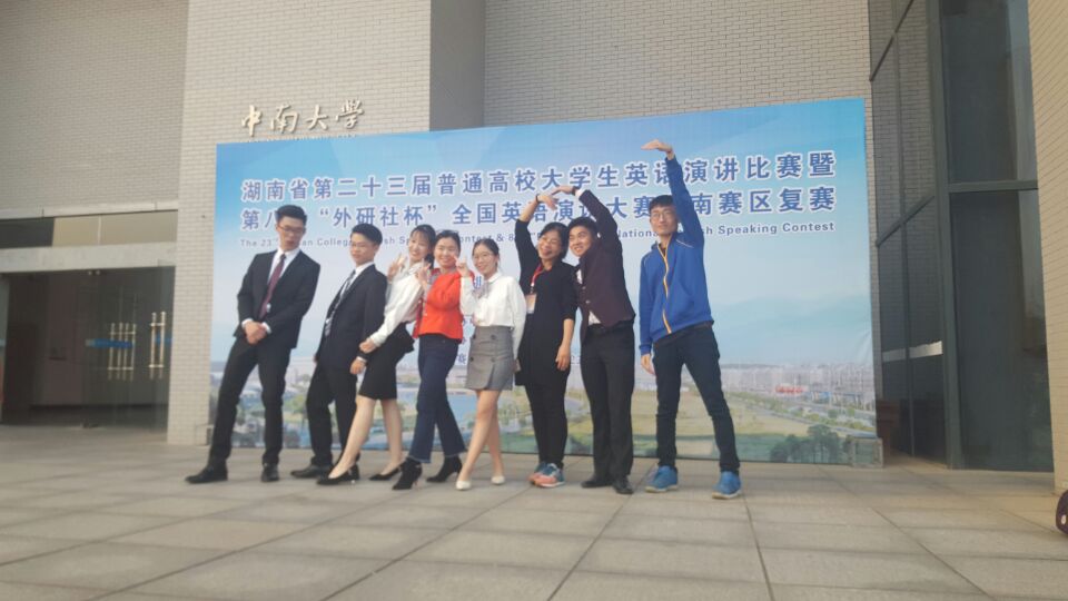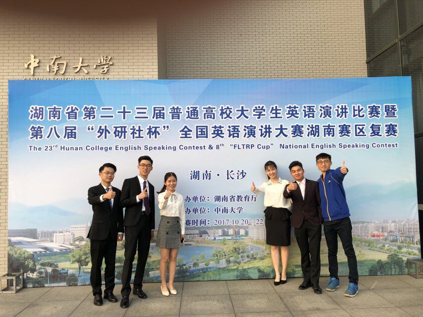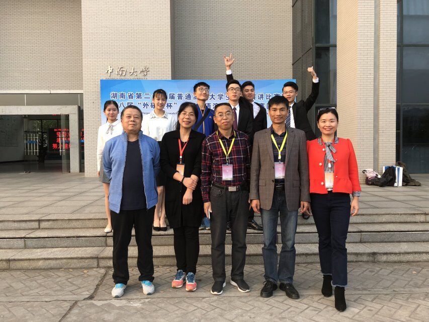 2017年10月21-22日,湖南省第二十三届大学生英语演讲比赛暨第八届“外研社杯”全国英语演讲大赛湖南赛区复赛在中南大学隆重举行。我校派出以杨永和、王家义为领队,陈锋、刘青为指导教师,以及6名选手组成的竞赛一组和竞赛二组两支代表队参加比赛。